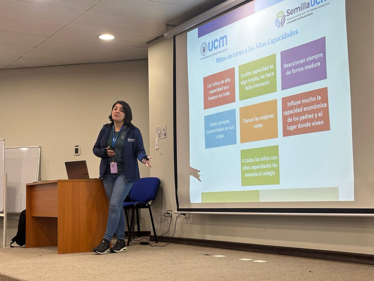 Con el propósito de fortalecer la identificación de estudiantes con altas capacidades, el pasado 21 de agosto, en las dependencias de la Universidad Católica del Maule, se realizó una instancia formativa dirigida a los coordinadores y representantes de diversos establecimientos municipales de las comunas de San Javier, Talca, Constitución, Molina, San Clemente, Cauquenes y Linares.